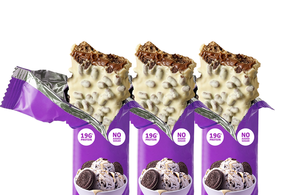 Three indulgent options: Chocolate Caramel Crisp features slow-dripping caramel layered between soft dough and a crispy chocolate shell. Chocolate Chip Cookie Dough tastes like raiding the mixing bowl – soft-baked dough loaded with chocolate chips. White Chocolate Cookies & Cream delivers velvety white chocolate studded with crunchy cookie pieces. All three pack 19-20g of protein, no added sugar, and zero chalky bite.